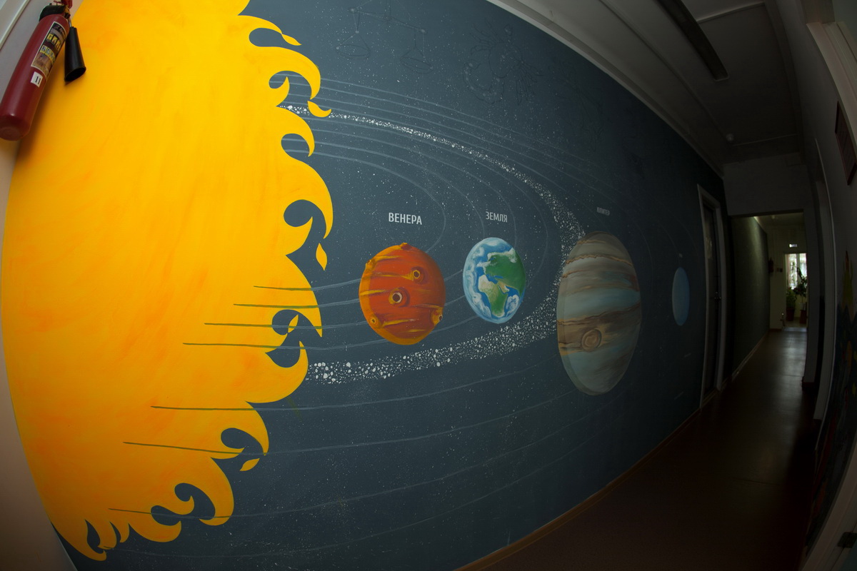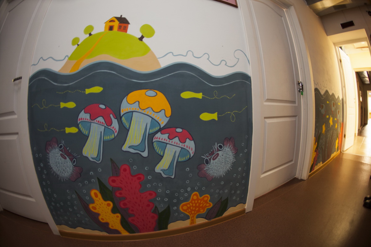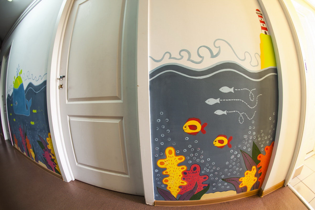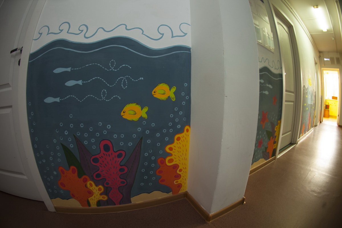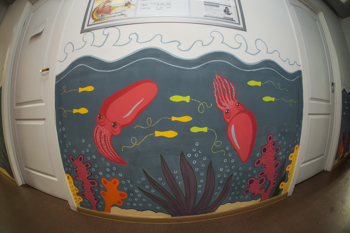 130 square meters of kindergarten walls became flora, underwater world and space.
