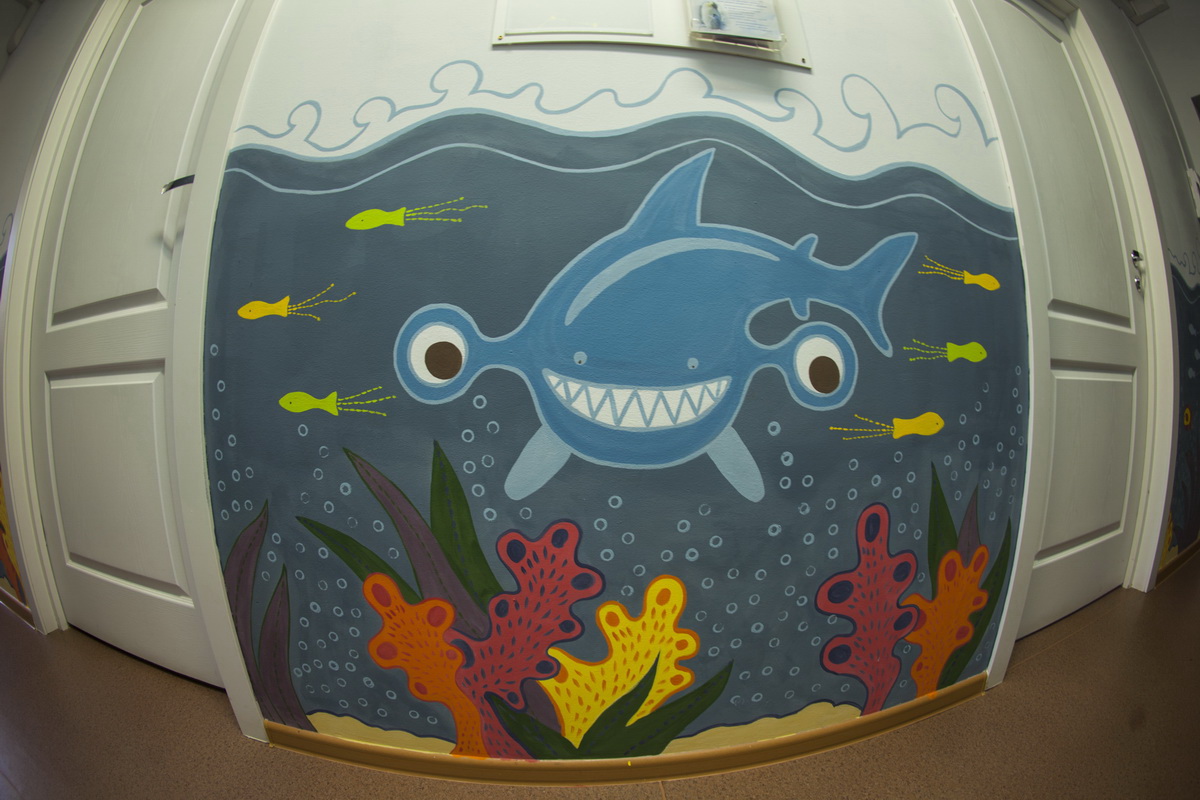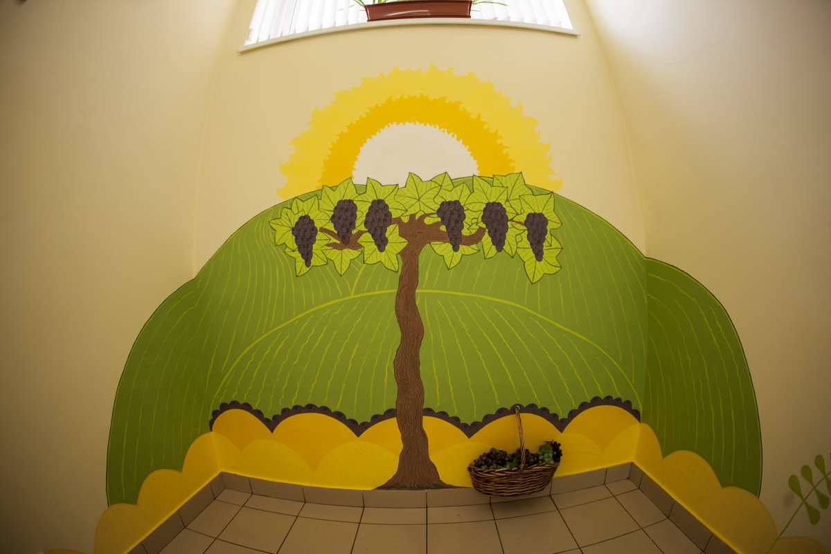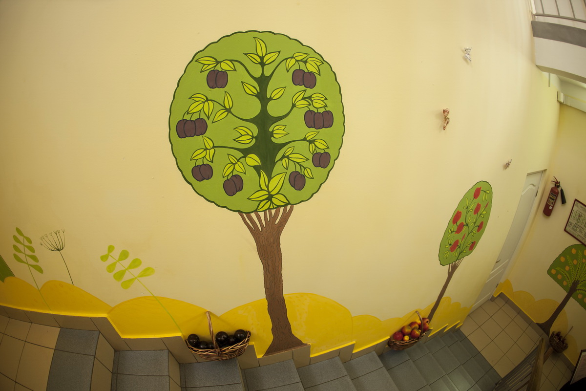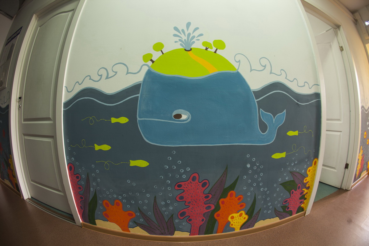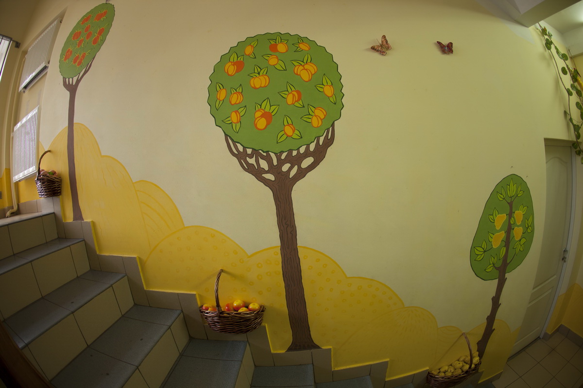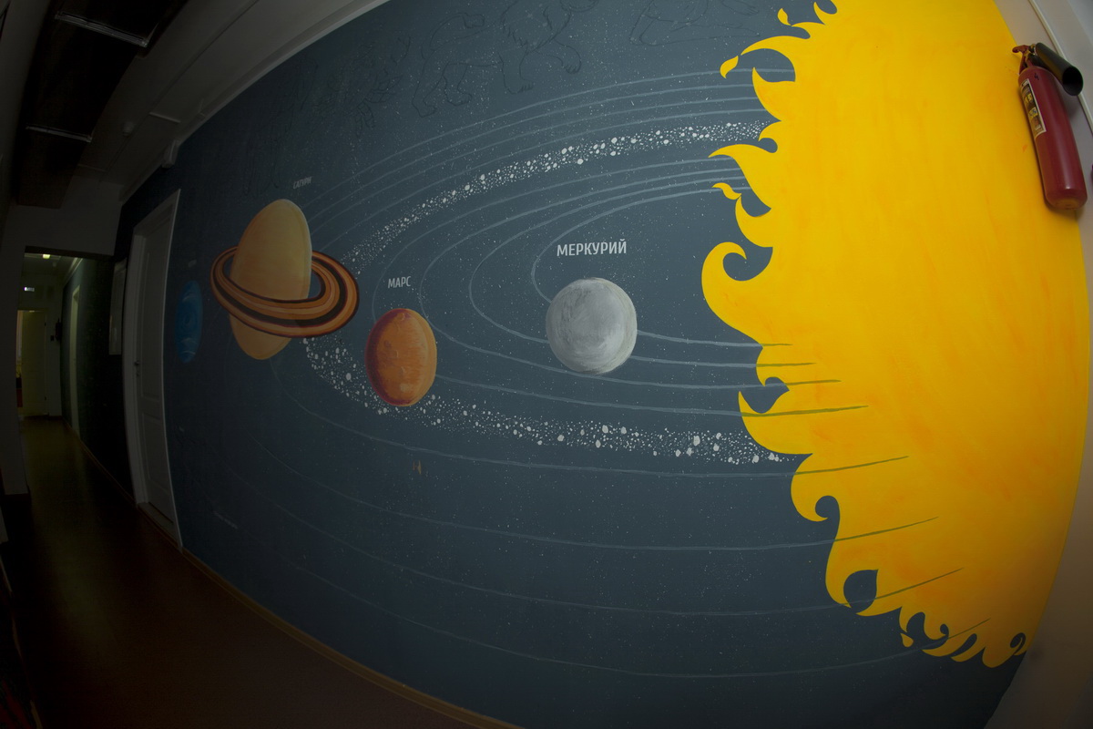 130 square meters of kindergarten walls became flora, underwater world and space.