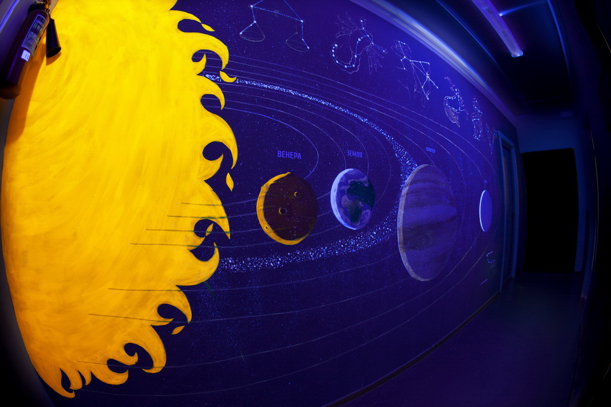 Under the light of ultraviolet lamps, connections are revealed, and then the stars turn into zodiacal constellations,