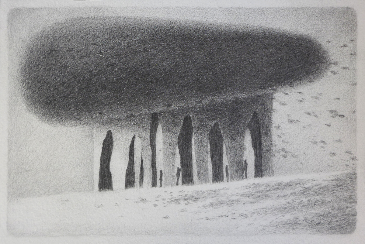 The series comprises a variety of techniques, including pencil drawings on thick paper, acrylic on canvas, and digital painting.