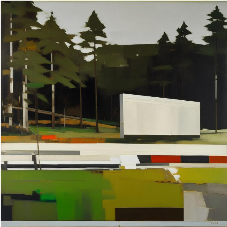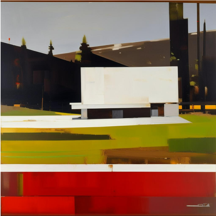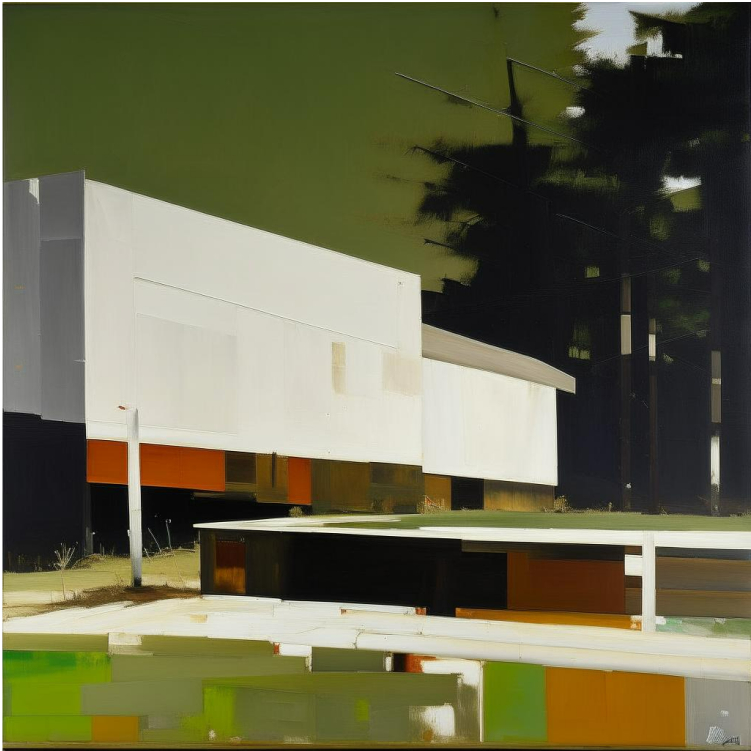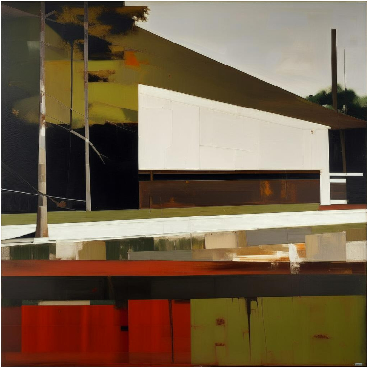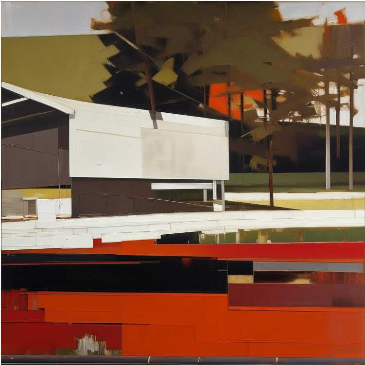 Then, we transition into digital abstraction created with artificial intelligence, where we can only recognize the houses through